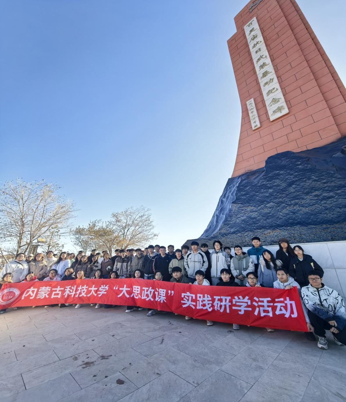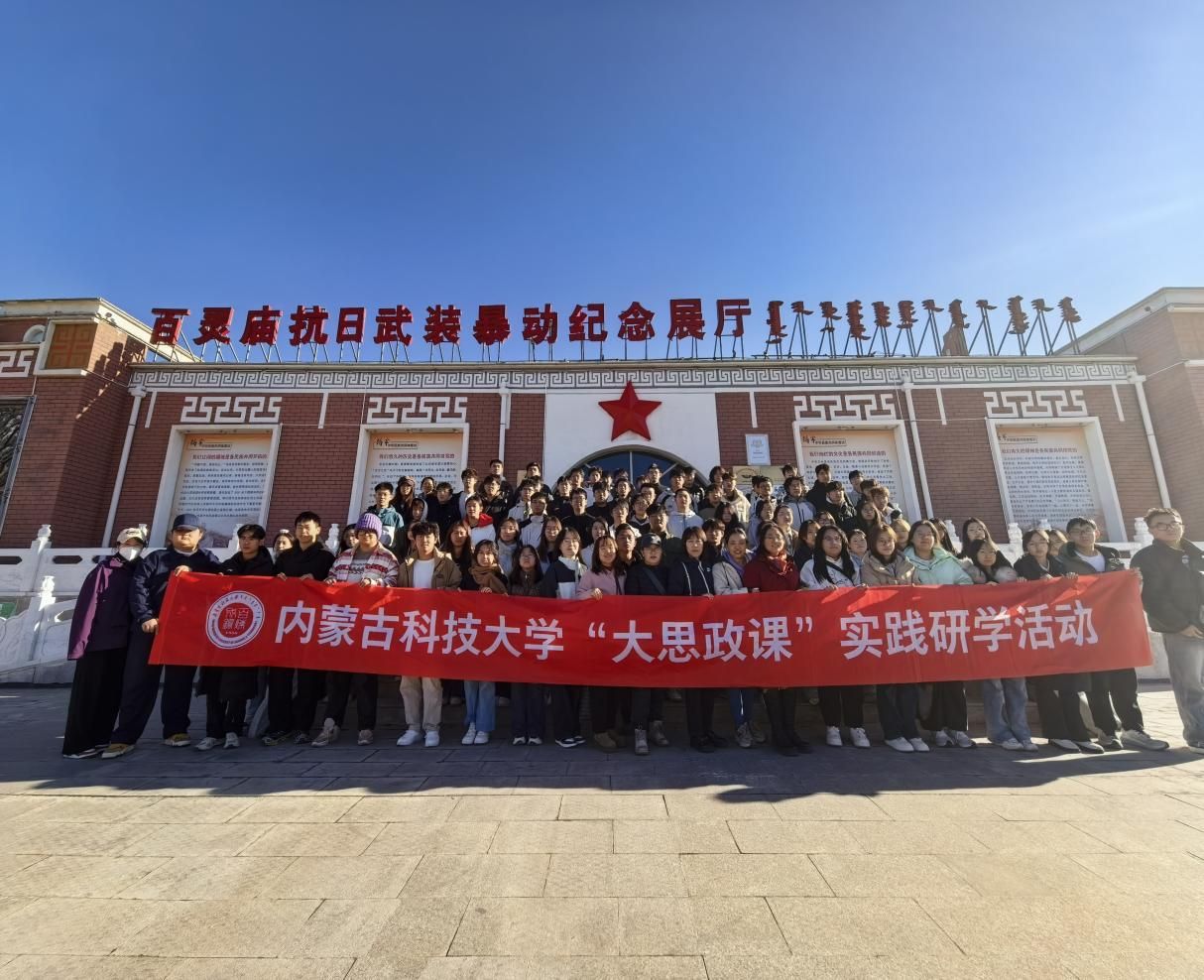 为进一步深化《中国近现代史纲要》课程的教学成效,引导青年学生厚植爱国情怀,铸牢中华民族共同体意识,2025年11月1日,老太阳集团tcy8722中国近现代史纲要教研室组织92名学生,在教研室教师的带领下,赴百灵庙抗日武装暴动纪念展厅和包头市铸牢中华民族共同体意识体验馆,开展了一场兼具历史厚度与时代温度的实践研学活动。